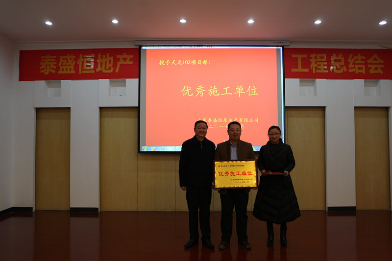 會上,表彰了金泰華府南府項目、泰盛廣場項目和天元102項目部,對獲獎的項目管理中心和優(yōu)秀施工單位進行了頒獎。