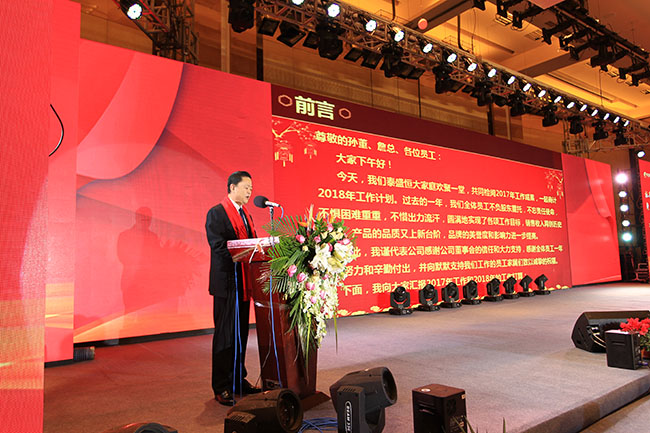 之后總經(jīng)理黃佑忠作了全面細(xì)致的工作報(bào)告,總結(jié)了公司2017年的工作成績(jī)及亮點(diǎn),安排部署了2018年的各項(xiàng)工作任務(wù)。黃總在報(bào)告中指出,2018年公司總體發(fā)展將圍繞“一個(gè)中心、兩大任務(wù)、三項(xiàng)指標(biāo)、四大提升、五個(gè)項(xiàng)目”展開,大家在新的一年里齊心協(xié)力,在“一二三四五”發(fā)展思路的指引下,以更加飽滿的工作激情,奮力譜寫公司事業(yè)發(fā)展新篇章。