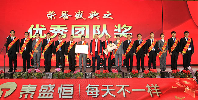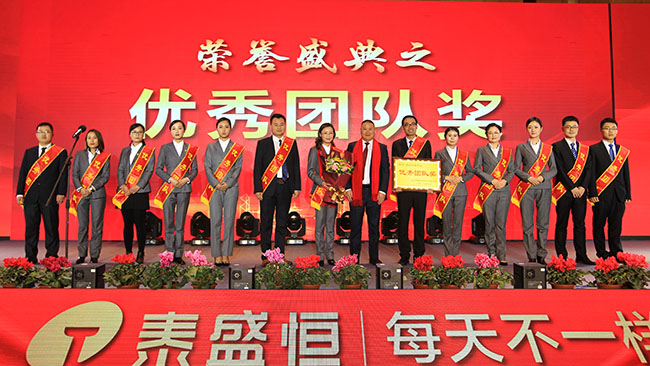 會(huì)上,對(duì)2017年取得突出成績(jī)的優(yōu)秀團(tuán)隊(duì)及個(gè)人,以及在公司工作五年以上的老員工進(jìn)行了隆重表彰,公司高層領(lǐng)導(dǎo)分別上臺(tái)宣布了獲獎(jiǎng)名單并為其頒獎(jiǎng)。其中,泰盛廣場(chǎng)項(xiàng)目獲得優(yōu)秀項(xiàng)目獎(jiǎng)、營(yíng)銷管理中心和招采管理中心獲得優(yōu)秀團(tuán)隊(duì)獎(jiǎng),孫董為獲獎(jiǎng)團(tuán)隊(duì)頒獎(jiǎng)了榮譽(yù)獎(jiǎng)牌。成績(jī)只代表過去,希望獲獎(jiǎng)的團(tuán)隊(duì)及個(gè)人在新的一年里戒驕戒躁、再接再厲,充分發(fā)揮模范帶頭作用,為公司發(fā)展再立新功。