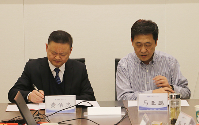 馬亞鵬董事長(zhǎng)(右)與黃佑忠總經(jīng)理(左)簽訂目標(biāo)責(zé)任書(shū)